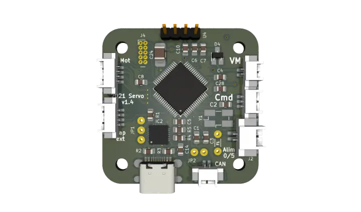 L’une des caractéristiques importantes de cette carte est sa flexibilité. Grâce à son connecteur pour codeur additionnel et à la possibilité de commander le moteur par PWM, via USB ou par CAN Bus, elle peut facilement être adaptée à une grande variété d’applications robotiques, CNC, ou de contrôle de mouvement.